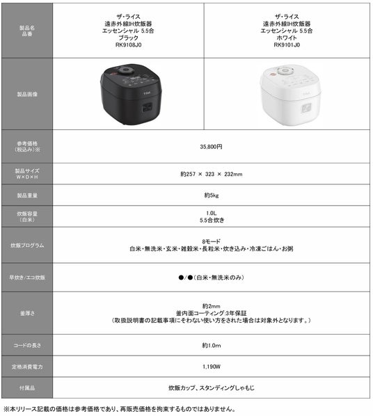株式会社グループセブジャパン(本社:東京都港区/代表取締役社長:ジュリアン・メジャー)は、2025年8月、ティファールの炊飯器「ザ・ライス」シリーズより、新たにセラミックプレートを採用した「ザ・ライス 遠赤外線IH炊飯器 エッセンシャル 5.5合」を新発売します。