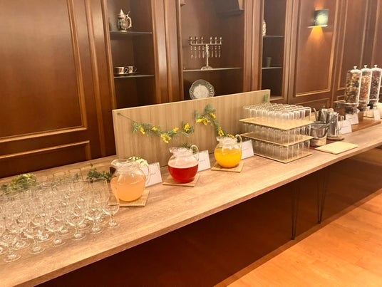 ドリンクはスパークリングワイン、ワイン、コーヒー、ソフトドリンクをご用意。