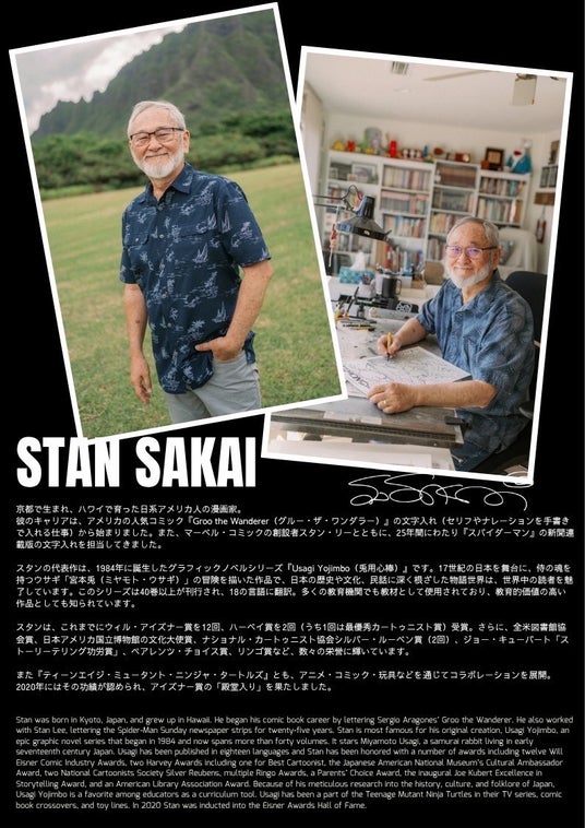 『Usagi Yojimbo(兎用心棒)』は、アメリカの漫画界を代表する作品のひとつとして、40年以上にわたり世界中の読者を魅了してきたグラフィックノベル・シリーズです。日系アメリカ人の漫画家、スタン・サカイによって1984年に生み出され、これまでに20カ国以上で翻訳出版されるなど、国や世代を超えて広く愛され続けています。