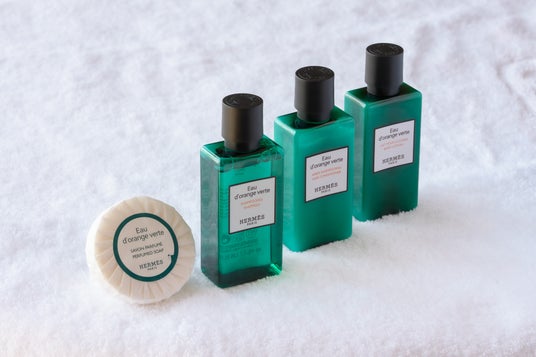バスタイムを優雅に彩るHermes「オー ドランジュ ヴェルト」は、もぎたてのみずみずしいオレンジの香りに、爽やかなミントと苔のウッディノートがアクセントを添えます。