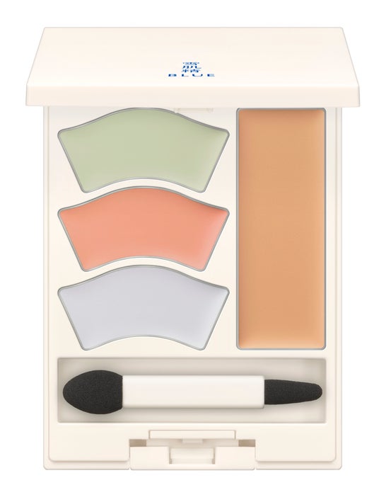 赤みをカバーする「ライトグリーン」、クマをカバーして明るさを与える「ベビーピンク」、くすみをカバーして透明感を与える「クリアブルー」、シミや凹凸をカバーする「ナチュラルベージュ」をセットしました。1品で幅広い肌悩みをカバーし、明るい透明感を引き出します。