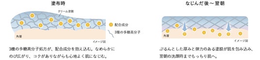 スキンケア直後のうるおったもっちり感が翌朝まで続き、洗顔後も柔らかでなめらかな肌へ導く