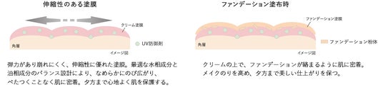 しなやかなシールド膜が肌を包み続け、日中のスキンケア効果と美しいツヤ肌仕上がりを実現