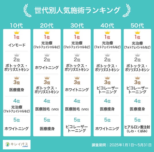 美容医療検索・予約サービス「キレイパス byGMO」が「2025年上半期 美容医療人気ランキング」を発表【GMOビューティー】