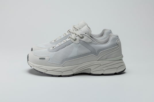 学生靴の丈夫さを引き継ぎながら、ミニマルな佇まいに。耐久性を考慮した素材をベースにアッパーを構成。屈曲部の重なりを抑え、隠しサドルを搭載することで歩行時の足当たりや横ブレに配慮した設計に。ソールユニットは、衝撃吸収に優れたミッドソールと防滑ラバーを配置したアウトソールで構成し、さまざまな路面で安定したグリップ力を発揮。スマートな佇まいと質実剛健さを兼ね備えたジョグタイプ。