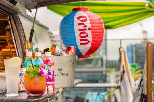 ドリンクはオリオンビールをはじめとする6種類のビールをご用意。さらに、沖縄らしさにこだわり「沖縄バヤリース」のグァバやソルティシークヮサー、南国マンゴーなど沖縄限定発売のドリンクを今回特別に取り揃えました。その他、沖縄では定番の「さんぴん茶」や、アロフトオリジナルのカクテルはここでしか味わえない一杯をご用意。まさに、屋上で味わう"夏のビアガーデン"。