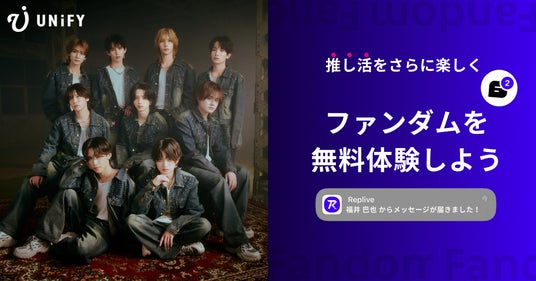ファンダムアプリ「Replive(リプライブ)」を運営する、Replive株式会社(本社:千葉県浦安市、代表取締役CEO:飯野 太治朗、URL:https://replive.jp/ )は、2025年7月1日(火)より、新たにアーティストのUNiFYの参加が決定したことをお知らせいたします。