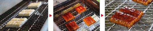 一度蒸しあげた「ほぼうなぎ(R)」を、静岡にある"本物のうなぎの蒲焼き工場"で丁寧に三度焼きしています。また、「ほぼうなぎ(R)」の裏面もしっかりと焼き目を付けることで、うなぎの蒲焼き特有の香ばしさがアップしました。