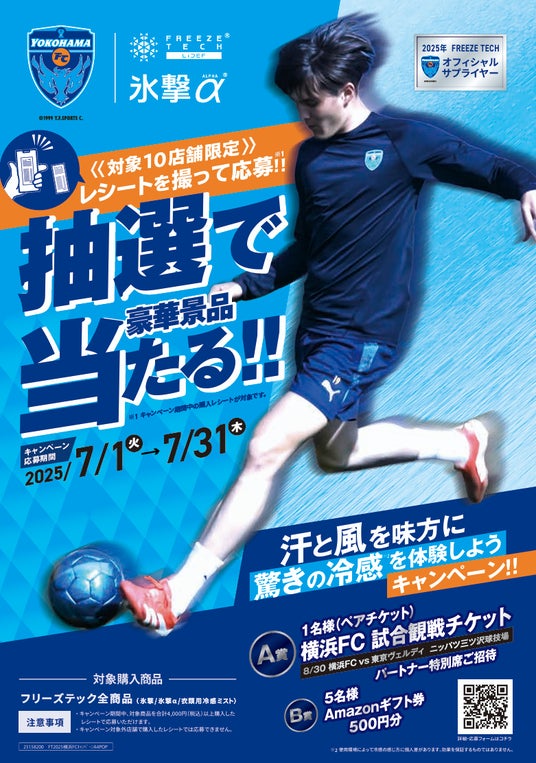 7月1日からは、フリーズテック×横浜FCによる、スポーツ量販店向け「汗と風を味方に 驚きの冷感(※1)を体験しよう!」キャンペーンを実施いたします。ぜひこの機会をお見逃しなく!