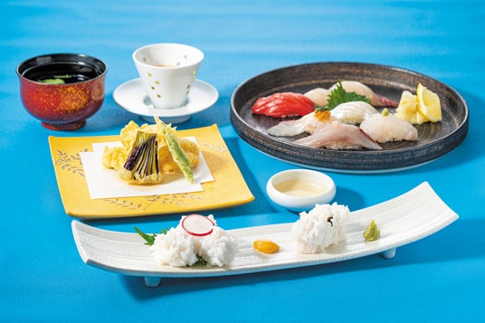 淡路島の玄関口に位置し、明石海峡大橋を眺めながら旬の食材を味わえるレストランや、特産品のショッピングを楽しめる淡路ハイウェイオアシス(運営:ユーアールエー株式会社/所在地:兵庫県淡路市岩屋)の鮨処「すし富」では、2025年7月4日(金)より、1か月限定の季節の新メニューを販売いたします。