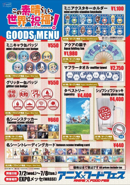 アニメ×フードフェス共通ノベルティに加えて、各料理ごとの限定ノベルティも配布!