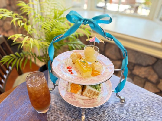 パイナップル、マンゴー、グアバなど南国を感じるスイーツやソースと、一色堂茶廊自慢のサンドイッチが選べるアフタヌーンティーです。さっぱりとしたミントとライムを感じるモヒートアイスティーもお楽しみいただけます。