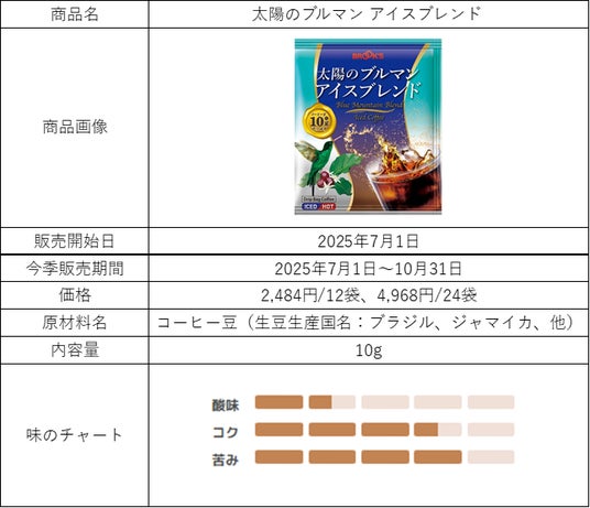 株式会社ブルックス(本社:神奈川県横浜市、代表取締役社長:小川裕子)は、高級銘柄を揃えた「グルメコーヒー」シリーズより『太陽のブルマン アイスブレンド』を2025年7月1日より夏季限定で販売開始します。