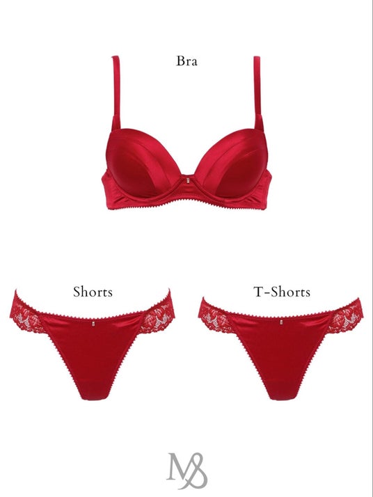12匁のシャンパンゴールドとレッドのシルク生地を使用したSILK GLACE BRAはブランドを表すシグネーチャーモデル。