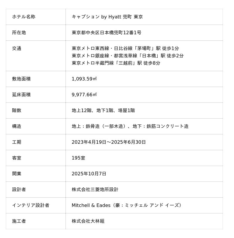 「ハイアットの最新ライフスタイルホテルブランド「キャプション by Hyatt 兜町 東京」着工」