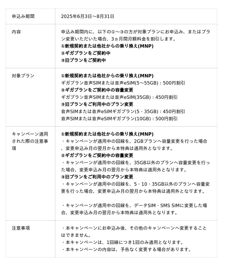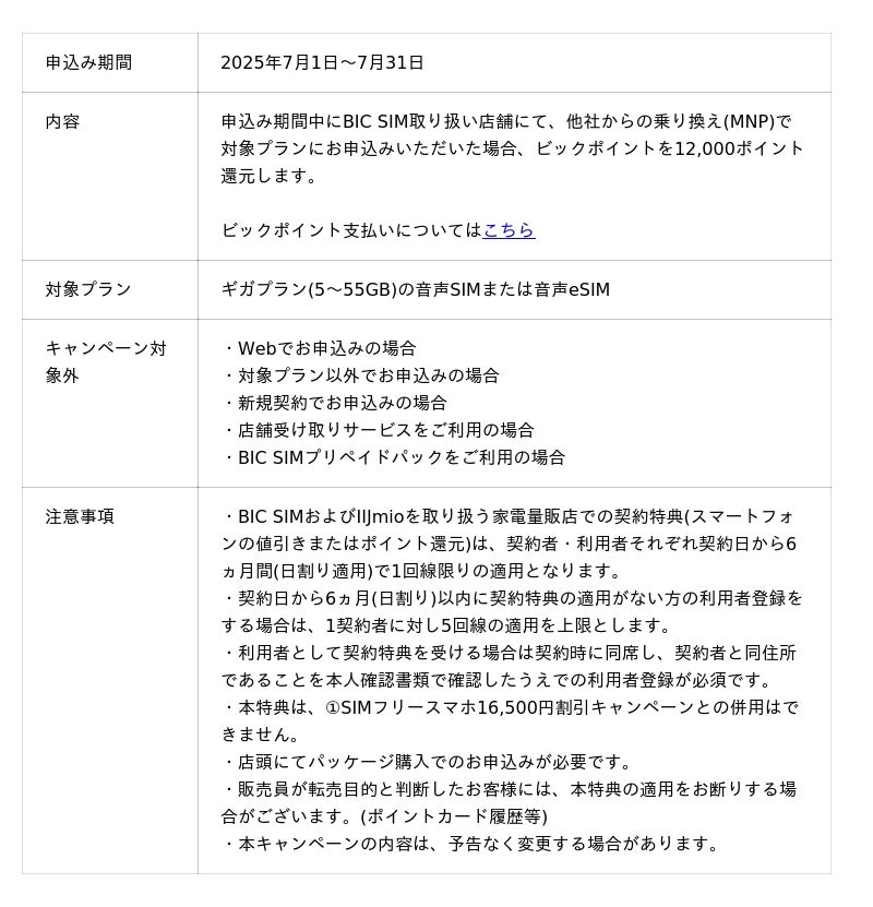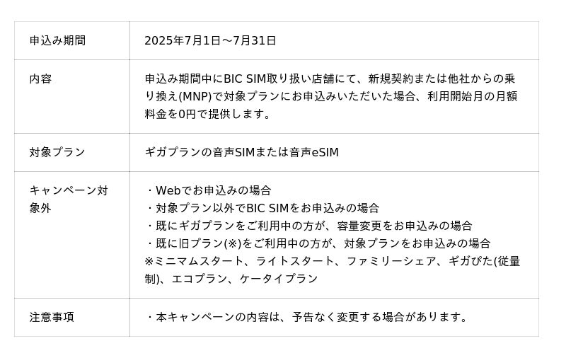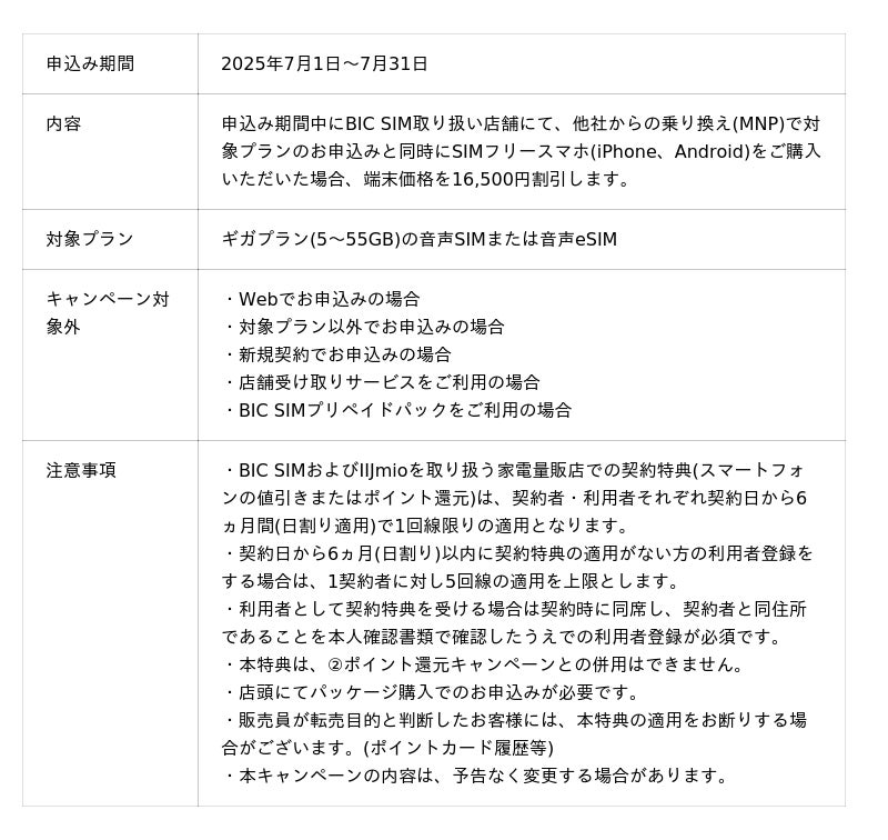 [店頭申込み限定]BIC SIMキャンペーンの詳細は以下からご確認いただけます。