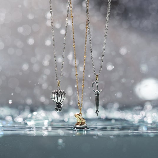 躍動感を感じる立体的なモチーフチャームは全部で3種。17,600yen(気球) / 24,200yen(蛙)/ 16,500yen(傘)※ネックレスチェーンは別売り