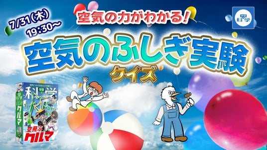 ・7月31日(木)19:30~ 空気の力がわかる! 空気のふしぎ実験クイズ