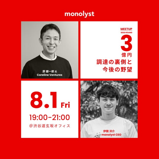 今回の資金調達に合わせてオフィス移転を実施します。新オフィスにて投資家のCoreline Ventures原様をお招きし、monolystへの投資背景を伺いながら、今後の展望についてお話しします。monolystにご興味のある方は、以下のイベントページよりお気軽にお申し込みください。