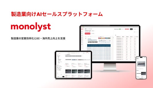 当社は、2025年4月より製造業向けAIセールスプラットフォーム「monolyst(モノリスト)」の提供を開始しました。製造業では受発注の主たる手段がFAXであり、スペック・製品画像などの商品情報は紙カタログで流通するなどアナログ業務が半世紀以上も続いています。結果として、発注者が求めるEC化や海外輸出機運の高まりに対応できていない企業が多く存在します。これらの課題に対して、monolystはAIによって、製造業のフロント業務を劇的に効率化し、ECや海外の販路拡大・売上向上に貢献いたします。