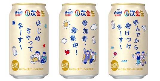 こうした背景をうけ、オリオンビールでは、0次会の楽しさを体験いただくイベント、「0次会屋 by オリオン ザ・ドラフト」を開催いたします。会場では、「オリオン ザ・ドラフト」の数量限定デザイン缶「0次会デザイン缶」を1缶無料で配布。缶には「はじめちゃってまーす!」「参加者、募集中!」「飲んでから駆け付けまーす!」など、0次会の集合を促すメッセージと、イラストレーターのOkutaさんが手掛けるゆるチャーミングなイラストが描かれており、メッセージアプリやSNSで共有することで、0次会の呼びかけや、楽しい時間のシェアにも活用いただけます。