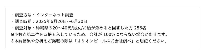 「0次会」とは、公式な飲み会(1次会)の前に、仲の良いメンバーでちょこっと集まって楽しむ、気軽なひとときのこと。今回、オリオンビールが沖縄県在住の20代~40代を対象に実施した調査の結果、「0次会を実施したことがある」と回答した人は約4割(37.1%)にのぼりました。0次会を行うメンバーは「友人」(55.8%)が最も多く、次いで「職場の同僚」(50.5%)となりました。
