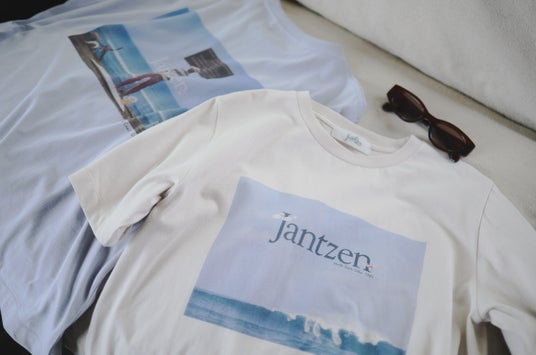 JANTZENの名を更に広めるきっかけとなった、当時広告やポスターで使用していた浅井愼平氏のアーカイブ写真を現代のJANTZENの雰囲気に落とし込み、印象深い2型のプリントTシャツとして復活いたしました。