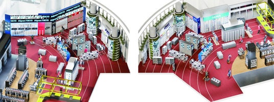 今回のリニューアルでは、お客様により快適で質の高い商品選び体験を提供するため、これまでの新国立競技場トラックと同じ床材を使用した売場に加えて最新のギア情報を映し出す迫力ある大型サイネージを設置し、商品の魅力を視覚的にお伝えいたします。