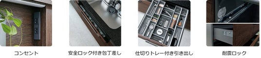 さらに、家電収納タイプのカップボードには、蒸気排出機能とコンセントを備えており、炊飯器などの家電製品やゴミ箱を内部にすっきりと収納でき、生活感を隠せるのも魅力です。"見せたくなる"キッチンとして、暮らしに調和する美しさと機能性を両立します。