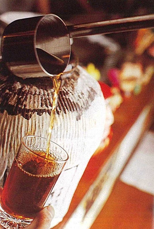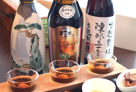 熟成された年数や飲み方によって味わいが異なる、代表的な中国酒「紹興酒」(写真右「古越龍山 陳醸30年」は現在壺にて販売されています)
