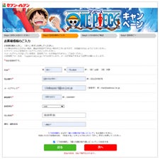 5.ルフィ&チキンヨギボー、満腹ルフィぬいぐるみは当選者登録フォームで配送先情報を入力。QUOカードPayは当選後メールアドレスに受取用URLを配信