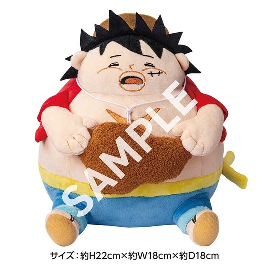 チキンを食べて「満腹になったルフィ」をイメージしたデザインのぬいぐるみです。満腹なルフィが可愛らしいシルエットで表現されています。