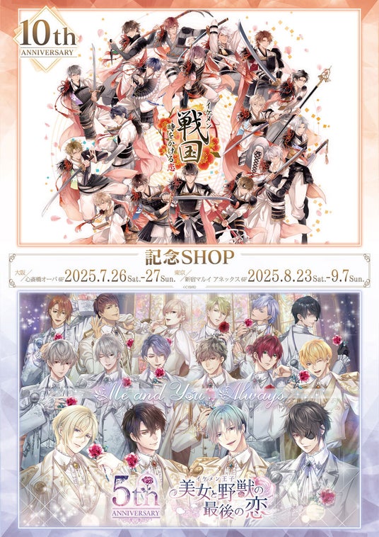 大阪・東京にて「『イケメン戦国◆時をかける恋』十周年&『イケメン王子 美女と野獣の最後の恋』5周年記念ショップ」の開催が決定しました!