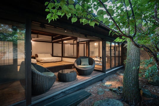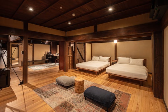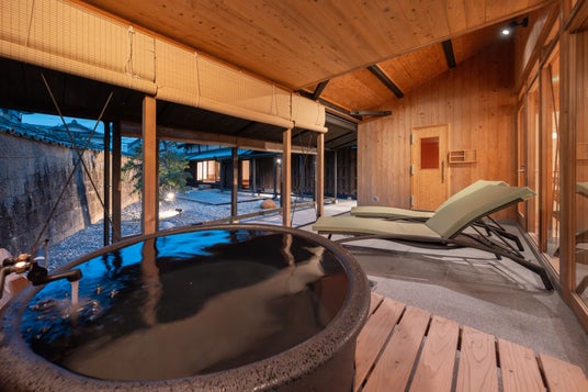 贅沢な庭や屋根裏部屋が魅力の一棟貸し客室。プライベートサウナや露天風呂を備えた、専用庭がある古民家に心と身体を癒される特別な滞在。