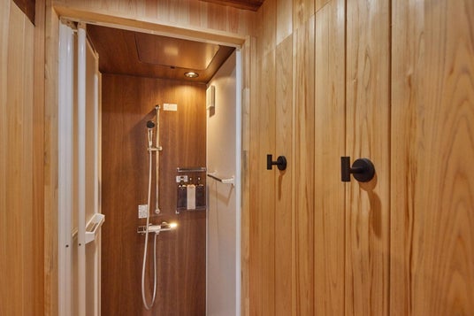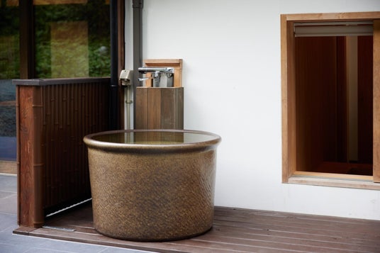 屋外には壺風呂も用意。自然の空気をたっぷり吸い込み、外気浴とともに深くリラックスいただけます。また、浴室とは別にシャワールームを1室設けており、グループやファミリーでの大人数の滞在時も快適にご利用可能です。多人数での宿泊でも、時間を気にせず身支度ができる機能性も備えています。自然と調和しながらも使い勝手に配慮された水廻り空間が、滞在をより豊かに演出します。