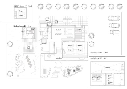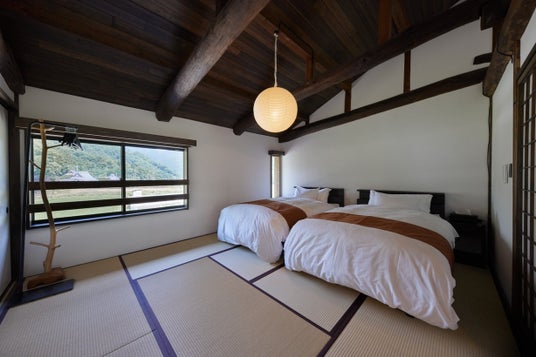 寝室は母屋に3部屋、土蔵サウナ2Fに1部屋あり、最大14名までの宿泊が可能です。各部屋は古民家の内装を活かしながらも、現代的な寝具や照明を取り入れた、落ち着きのある空間に仕上がっています。家族での利用はもちろん、友人グループやワーケーションにも対応できるレイアウトで、どの世代のゲストにも快適に過ごしていただけます。