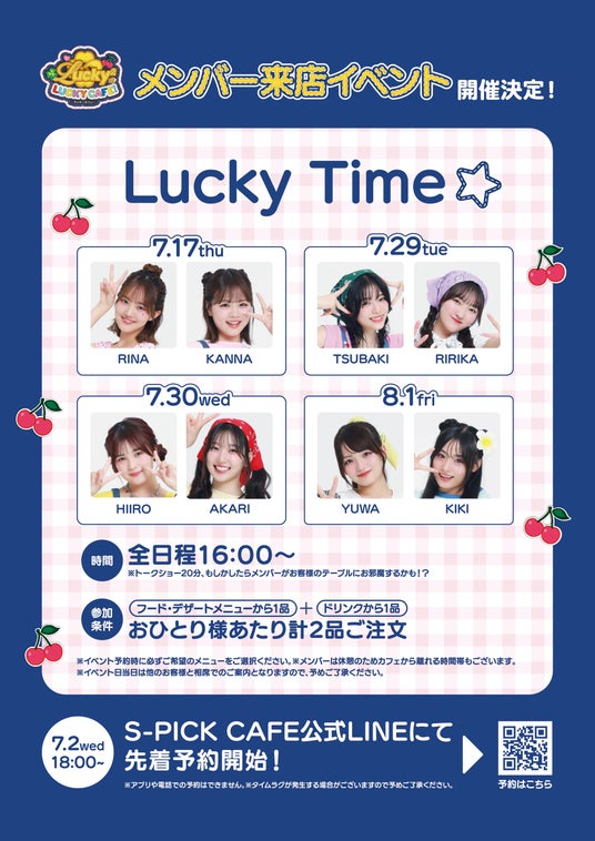 S-PiCK CAFE公式LINEアカウントより7月2日(水)18:00~より先着にて受け付けます。