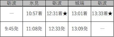 ※ご乗車は砺波駅(9:45発)、降車は★の砺波駅(12:31着)、(13:33着)に限ります。