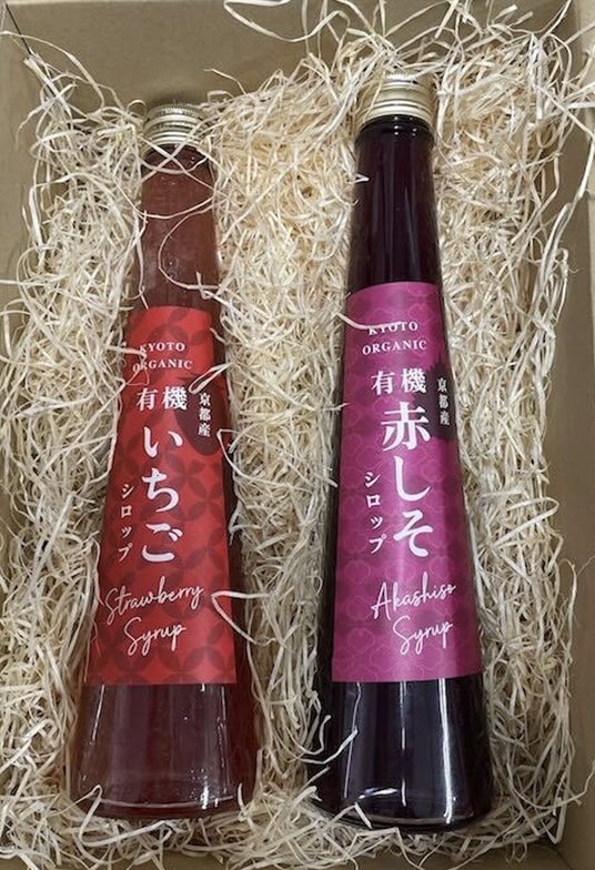 ・京都かめよし・かみむら農園・新食工業株式会社・株式会社ビオスタイル『京都産有機 赤しそ・いちごシロップ』