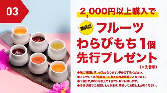 ▼豪華特典3. 2000円以上ご購入で「フルーツわらびもち」先行プレゼント!