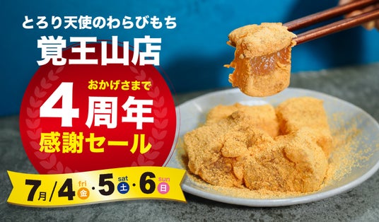 【7/4~7/6開催】とろり天使のわらびもち 覚王山店『4周年感謝祭』!!~全商品20%OFF!豪華3特典付き~