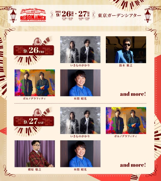 開場/開演時間: 9月26日 開場17:30/開演18:30 ・ 9月27日 開場16:00/開演17:00