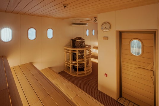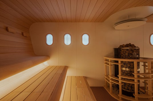 サウナストーブにはメトス社製「IKIヒーター」を採用。360度に配置されたサウナストーンが力強い熱とやさしい蒸気を生み出し、30分ごとに発生する熱波演出とともに、"ととのいのフライト"をご体感いただけます。