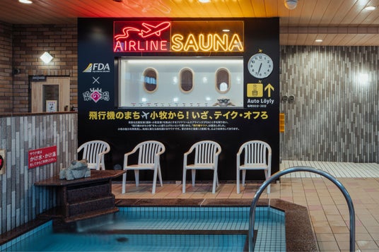 "飛行機が見える露天風呂"として親しまれてきた当館に、飛行機をテーマにした没入型サウナが加わったことで、小牧というまちの個性をまるごと味わえる、唯一無二の温浴空間が誕生しました。