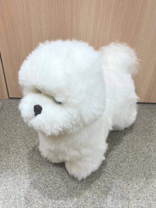 オリジナルぬいぐるみ販売中!店内を彩るビションフリーゼのぬいぐるみは特注で製作されたリアルな仕上がりで、来店者からも大人気。