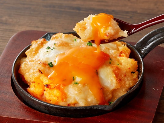 528円(税込)「赤からポテトサラダ」にチーズと卵を合わせた味わい深い濃厚ポテサラ焼。