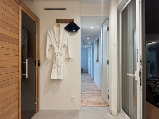 サウナハットやポンチョを掛けられるよう細部にもこだわりが
