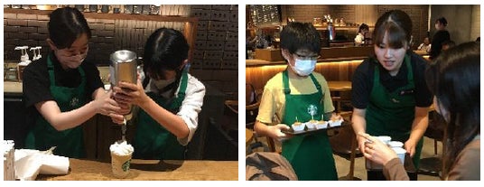 スターバックスでドリンク作成や挨拶などの接客にチャレンジしましょう。