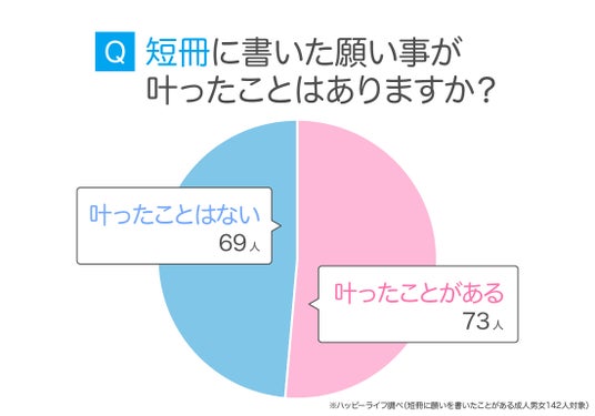 続けて、短冊に書いた願いが叶ったことがあるか聞いたところ、「叶ったことがある」と答えた人が約5割いました。
