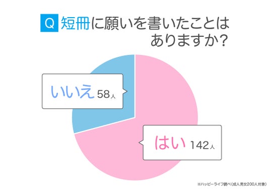 成人男女200人に、短冊に願いを書いたことがあるか聞いたところ、「はい」が約7割、「いいえ」が約3割でした。